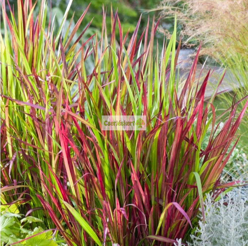 A vörös alangfű - japán vérfű - szokatlan, a szemet nagyon vonzó megjelenésű díszfű. Magassága 40-60 cm, rizómával terjedő, lassú növekedésű feltűnő, színes lombozatú, egyre nagyobb felületen terjed. Levelei különleges színeződése miatt nagyon kedvelt növény. Leveleinek töve zöld, felső része ragyogó piros színű. A nyár végén, ősszel egyre pirosabbá válik.