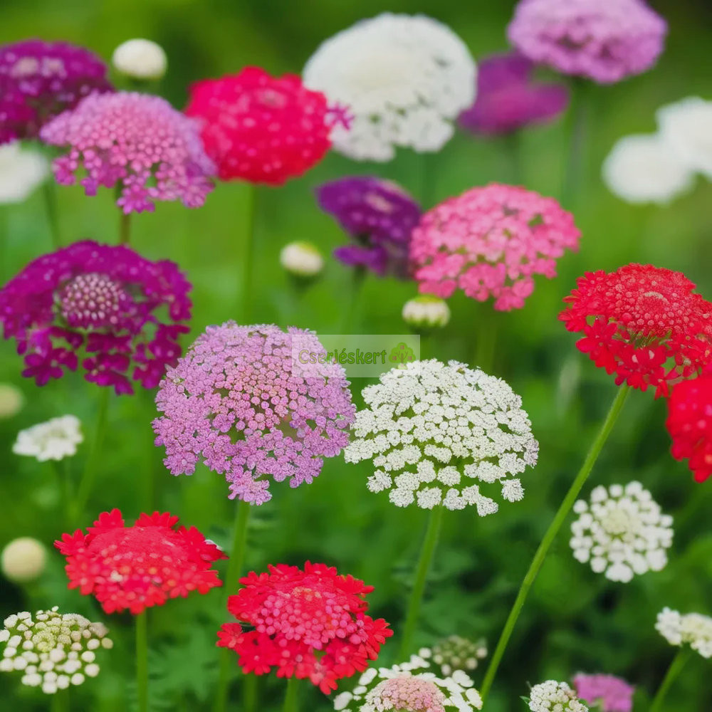 Sötétlila, bordó, rózsaszín és fehér ernyőszerű virágzatát júliustól hozza. Napfényes helyre ültessük. Kisebb szárazságot elvisel. Helyrevetés márciustól 0,5-1 cm mélyre az utolsó nagyobb fagyok után. 80-120 cm magas.