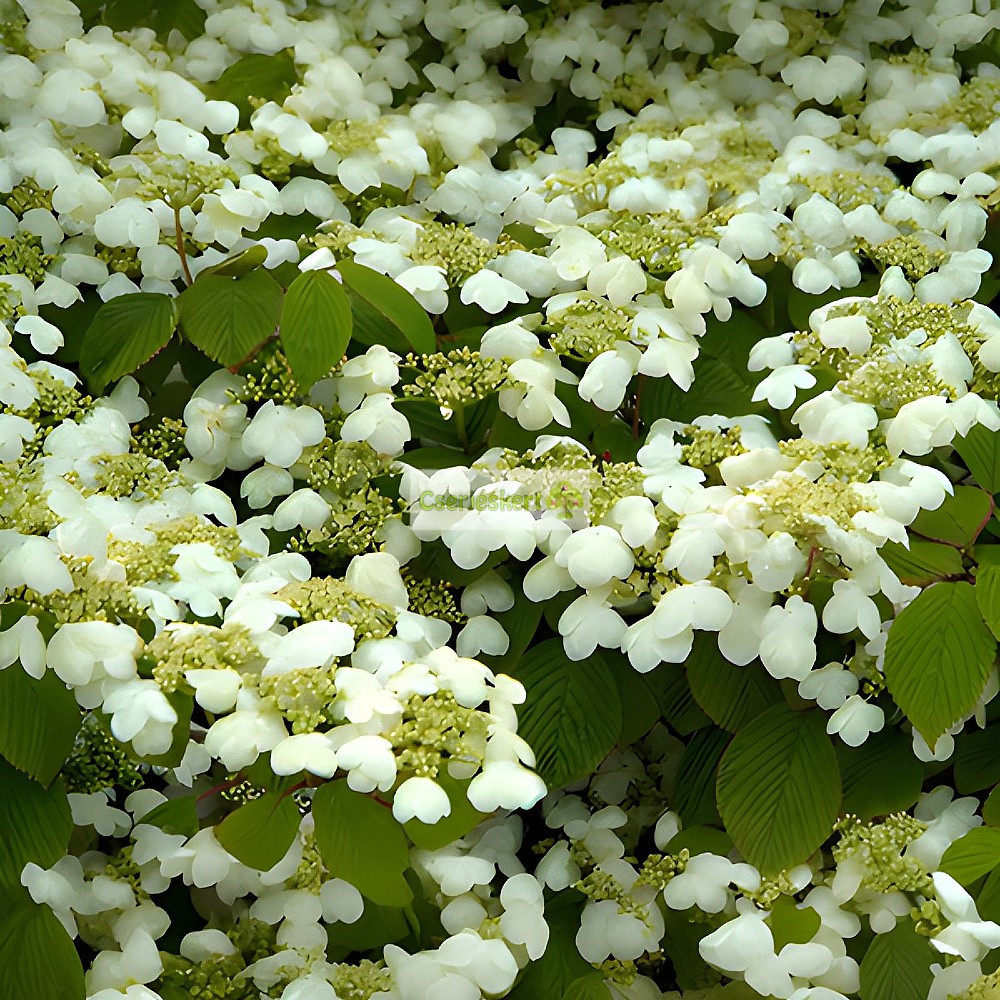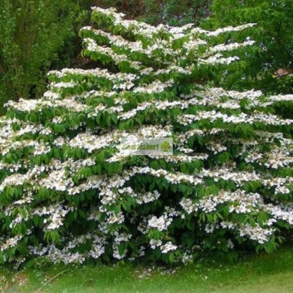 1,5-2 m magas, vízszintes ágú lombhullató cserje. Levelei 6-10 cm-es, széles-tojásdad alakúak, ősszel lilásvörösre színeződnek. Virágai 20 cm-t elérő, lapos bogernyőben nyílnak, meddő virágokkal. Üde, tápdús, humuszos kerti talajt, párás környezetet igényel. Tűző napra ne ültessük, de megfeleő mennyiségű fény feltétele a virágzásnak és az őszi lombszíneződésnek. Mutatós szolitercserje.