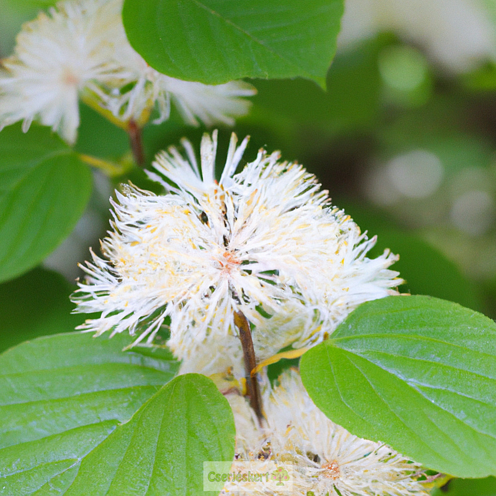 1,5 – 2 m magasra is megnő. Március - áprilisban virágzik. Bársonyos, zöld levelei ősszel intenzív sárga-narancsszínűre színeződnek, virágai pedig hófehér, végálló virágzatba tömörülnek, hosszú, gyantás porzókkal, amelyek a tollseprűre vagy az üvegmosókefére emlékeztetnek. Napos vagy félárnyékos helyet igényel, nedves talajjal. Igazán szépen, laza szerkezetű, savanyú, mészmentes talajba ültetve fejlődik. Különleges külseje miatt, szoliterként érdemes ültetni.
