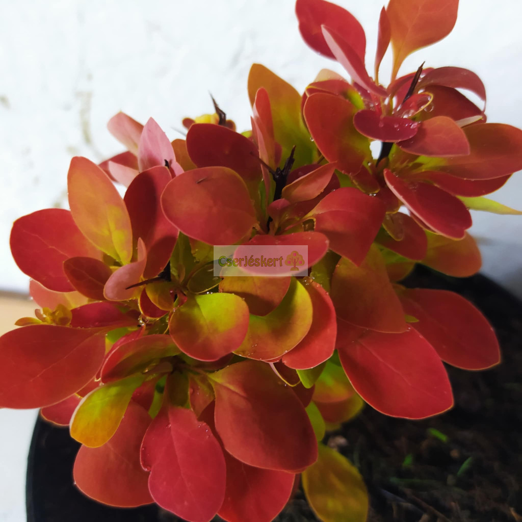 Az utóbbi évek legfeltűnőbb, legszínesebb japán borbolya nemesítése. Egyszerre arany és piros lombozata úgy virít mint ha egy folyton virágzó bokrot látnánk. Ez a szín valószínűtlenül élénk, nehéz elhinni hogy valóságos. Kis méretű, kissé oszlopos hajtásrendszerű, lombhullató, ami télen is díszít mert élénk piros bogyói sokáig a bokron maradnak.