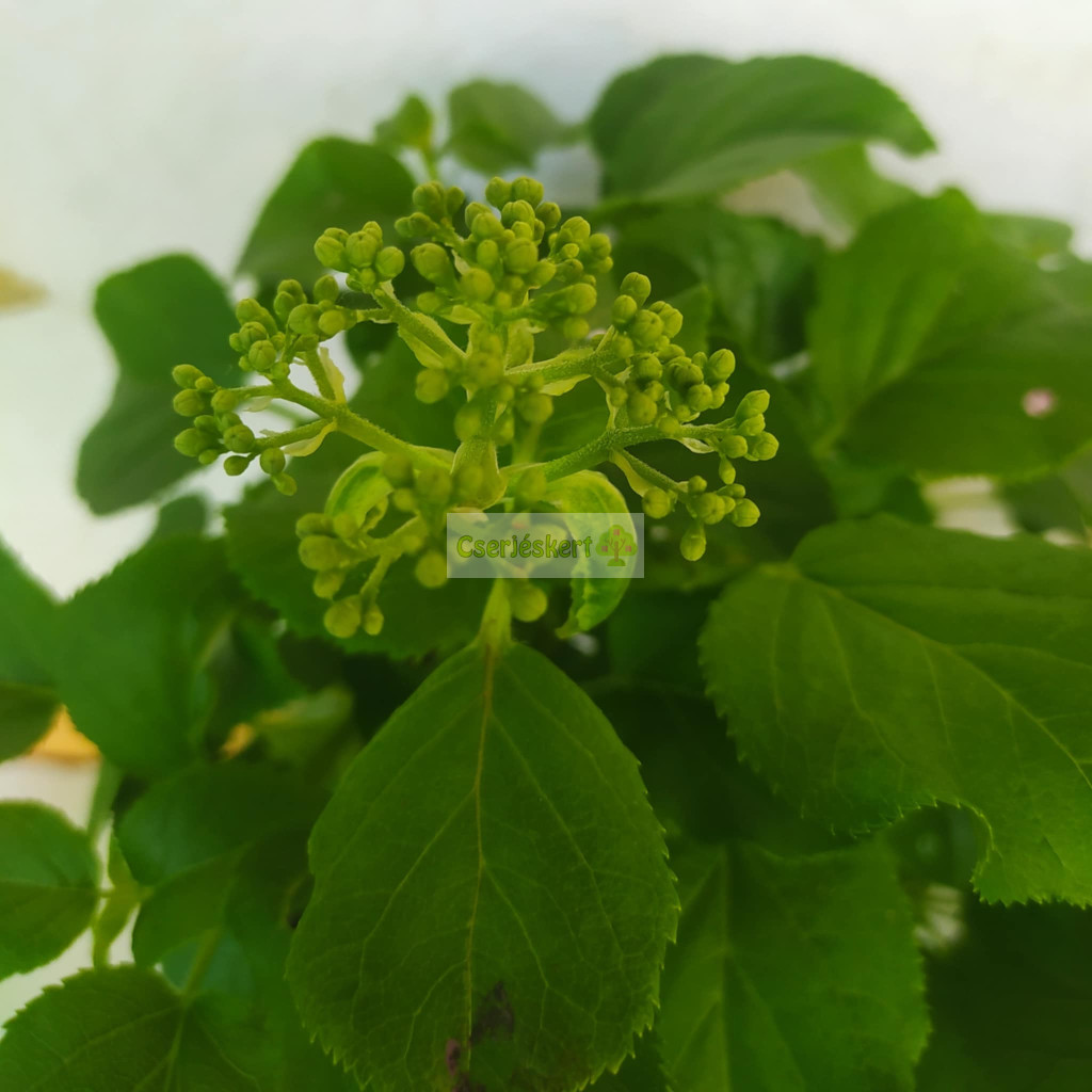 Léggyökerekkel 8–15 m-re is felkapaszkodó, árnyékos házfalak, lugasok hortenziája. Szabad állásba ültetve 1,5–2 m magas bokor. Június-júliusban nyílik, apró, illatos, zöldesfehér virágai sátorvirágzatba rendezettek. Magas humusztartalmú, nedves, mészmentes talajt, félárnyékos, védett fekvést igényel. Nyári dús virágzása, nagy zöldfelülete, aranysárga őszi lombszíne miatt kedvelik. Lassú növekedésű. Az első években alig virágzik. Télálló.
