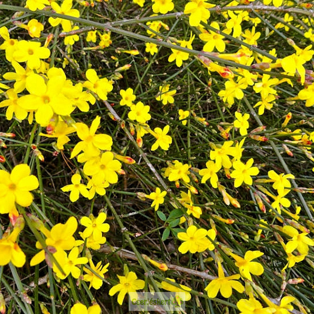 A téli jázmin a levelek kihajtása előtt virágzó díszcserjék egyike. Februárban, márciusban virágzik, szárrendszere négyszögletes, íves hajtásokból áll, amelyek földhöz érve legyökeresedhetnek. A kifejlett növény kb. 1,5 méter magas. Nagyon könnyen gondozható és kártevőkkel szemben ellenálló. Mérsékelten vízigényes és fagytűrő. Tápanyagban gazdag talajba kell ültetni.
