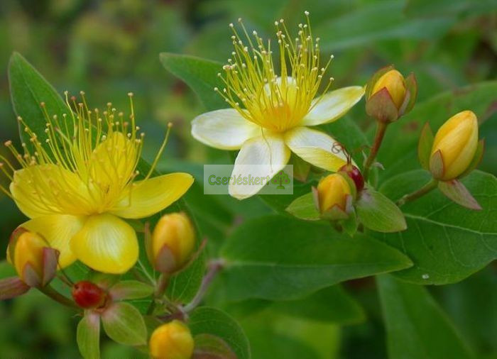 60-80 cm magasra növő lombhullató cserje. Élénk sárga virágai július elejétől augusztus végéig nyílnak, melyekből barnás-bordós bogyók fejlődnek. Napos helyet igényel, de kisebb fák árnyékába is ültethetjük. Jó tápanyaggazdálkodású, és jó vízgazdálkodású talajba ültessük.