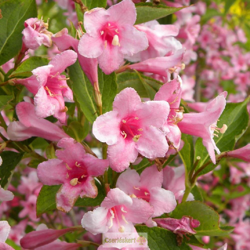 2-3 m magas, sűrűn elágazó díszcserje. 4 cm átmérőjű, rózsaszínű, tölcsér alakú virágai május-júniusban nyílnak és nem fakulnak el. A levelek elliptikusak, hegyesek és zöldek. A napos vagy félárnyékos helyet kedveli. Virágzás után érdemes megmetszeni és levágni a zavaró hajtásokat. Ősszel kisebb másodvirágzás várható. Humuszban gazdag talajban érzi jól magát.