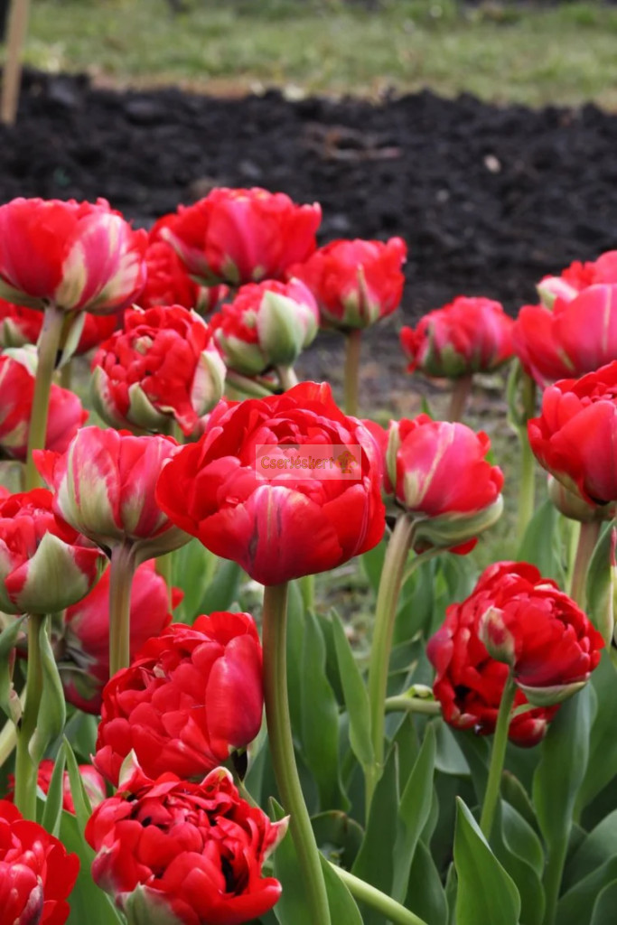 Ez az új Bombastic Red egy nagyon feltűnő tulipán! A hatalmas, bazsarózsaszerű virágok intenzív Ferrari vörösek és 70 cm magasak. Virágzási idő: április - május. Nagyon különböznek a legtöbb más dupla késői tulipántól. Abszolút szépség a kertben vagy exkluzív vágott virágként! Konténerben, erkélyen, cserépben is tartható.