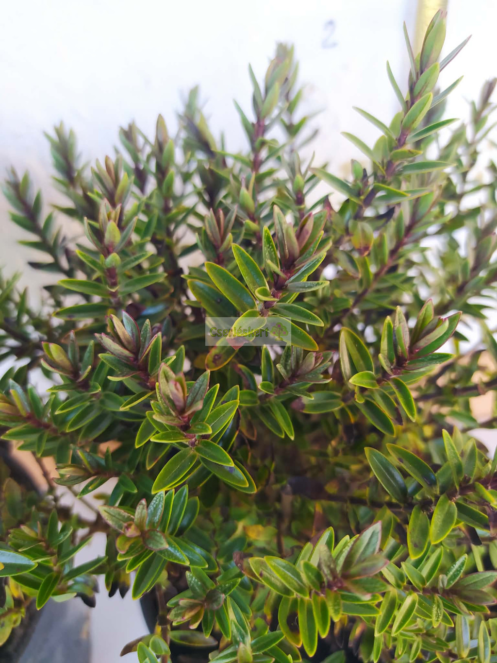 A Hebe 'Champagne' egy kompakt, örökzöld cserje. Virágzata fehér, rózsaszínes, halvány levendulás színezettel, amelyek késő tavasztól őszig jelennek meg. A virágzás gyönyörű kontrasztot alkot fényes zöld lombozatával, amelyet a téli hónapokban lilás - vörös tónusok árnyalnak. Lekerekített, bokros, max. 60-80 cm magas és szélesre nő. Ideális szegélyekhez, konténerekhez, vagy alacsony sövényként kevés karbantartást igénylő kertekhez.